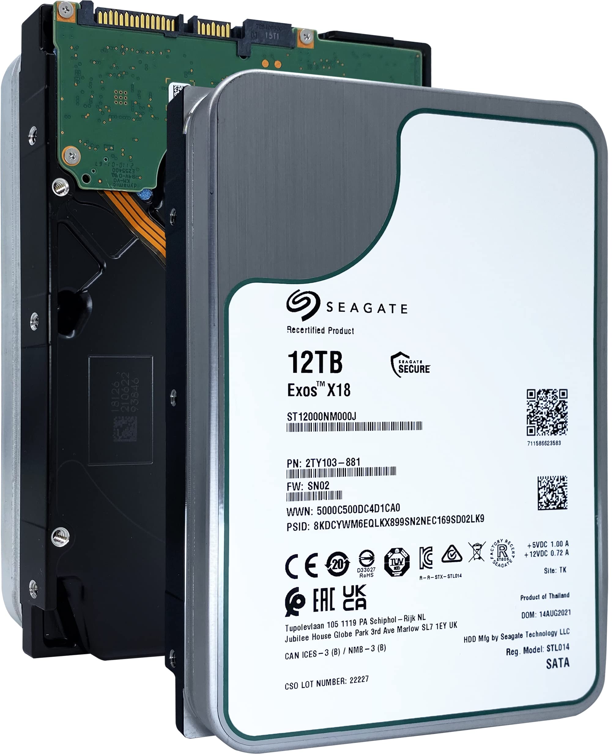 Seagate Exos X18 12TB 7200 RPM 512e/4Kn SATA 6Gb/s 256MB Cache 3.5-Inch Enterprise HDD (ST12000NM000J) (Renewed)
