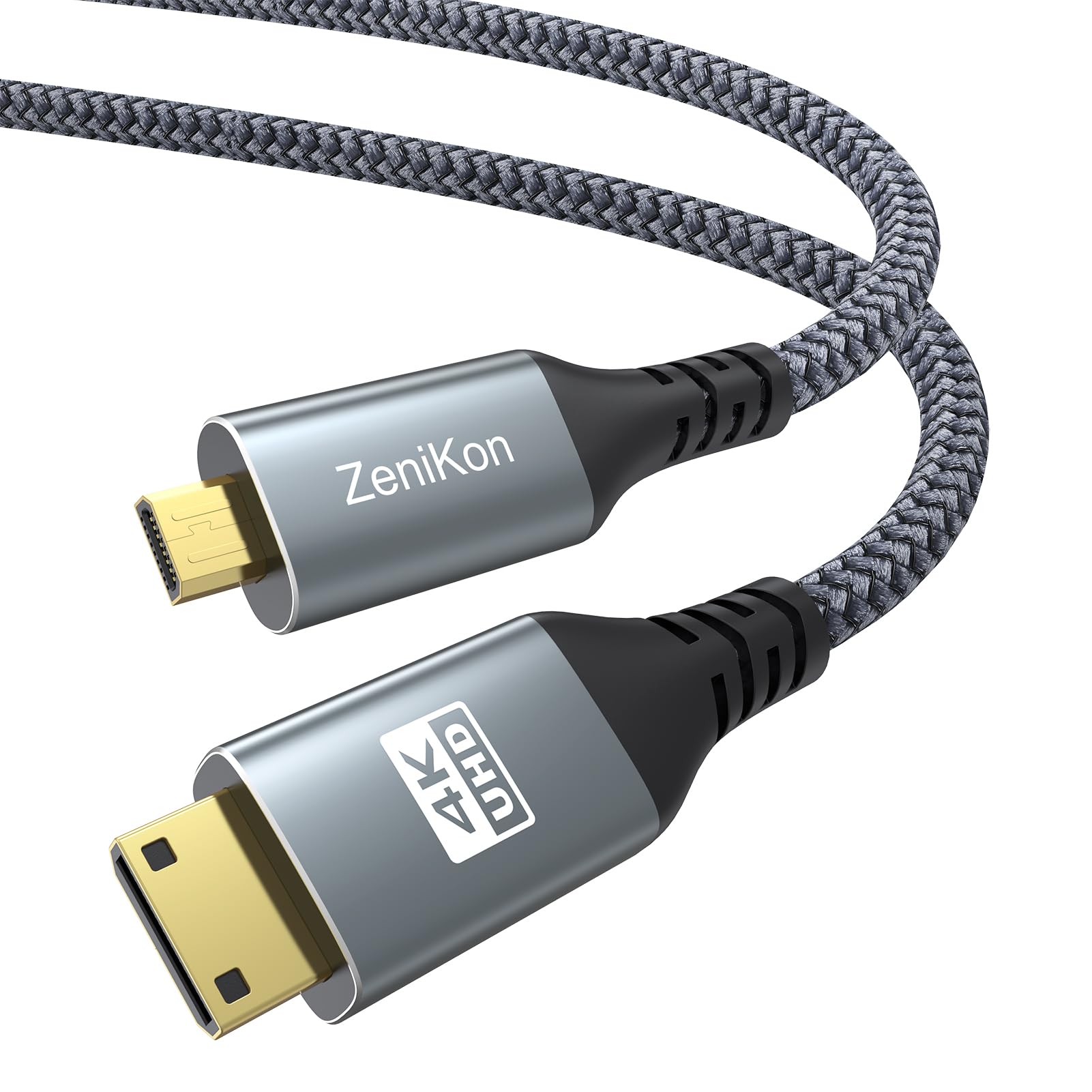 ZeniKon 4K Micro HDMI to Mini HDMI Cable 3.3FT for Raspberry Pi 5/4 Camera to Portable Monitor, High Speed Mini HDMI Type C Male to Micro HDMI Type D Male Cable Braided Cord 4K@60Hz, 2K, 1080P, 3D