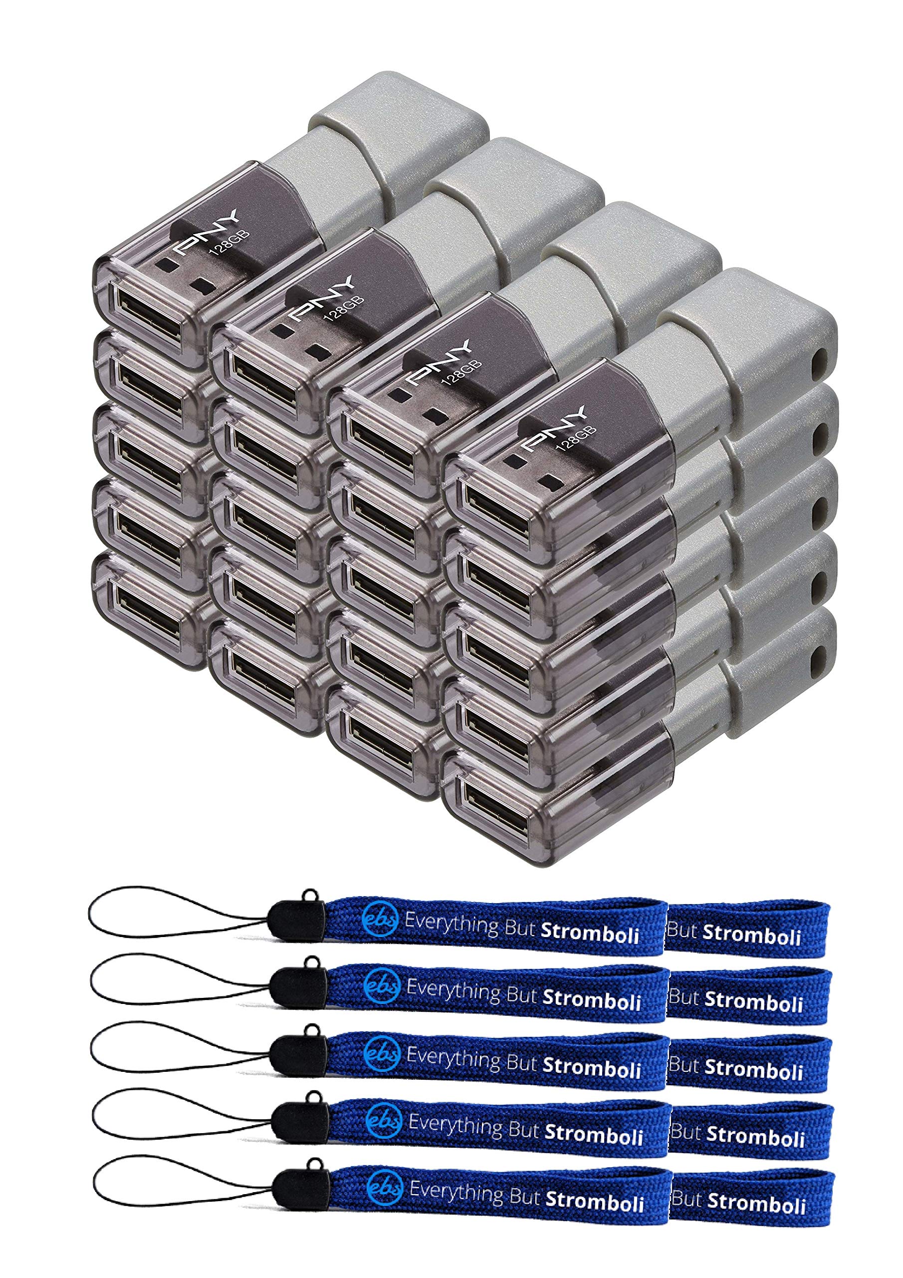 PNY 128GB USB 3.0 Flash Drive Turbo Attache 3 (20er-Packung) USB-Sticks im Bundle mit (10) Everything But Stromboli Lanyards (P-FD128TBOP-GE)