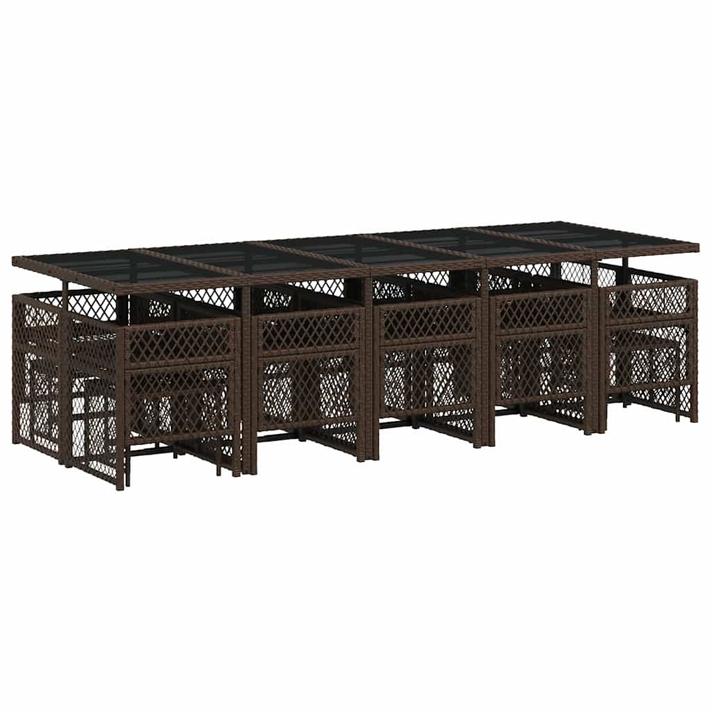 15-tlg. Garten-Essgruppe mit Kissen Braun Poly Rattan