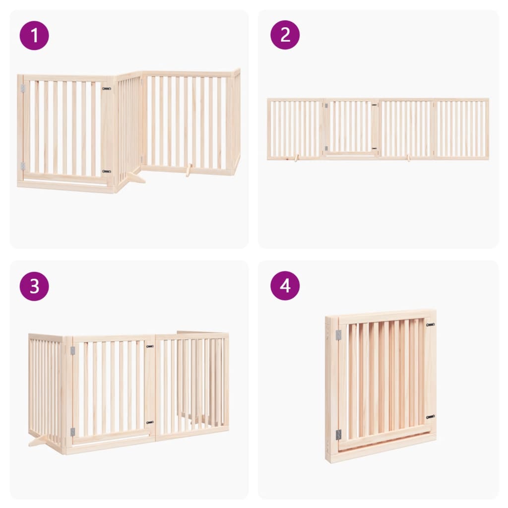 4-tlg. Hundetor mit Tür Faltbar 320 cm Pappelholz