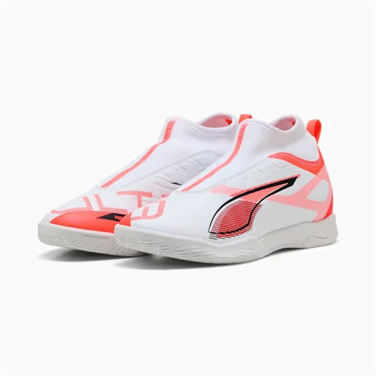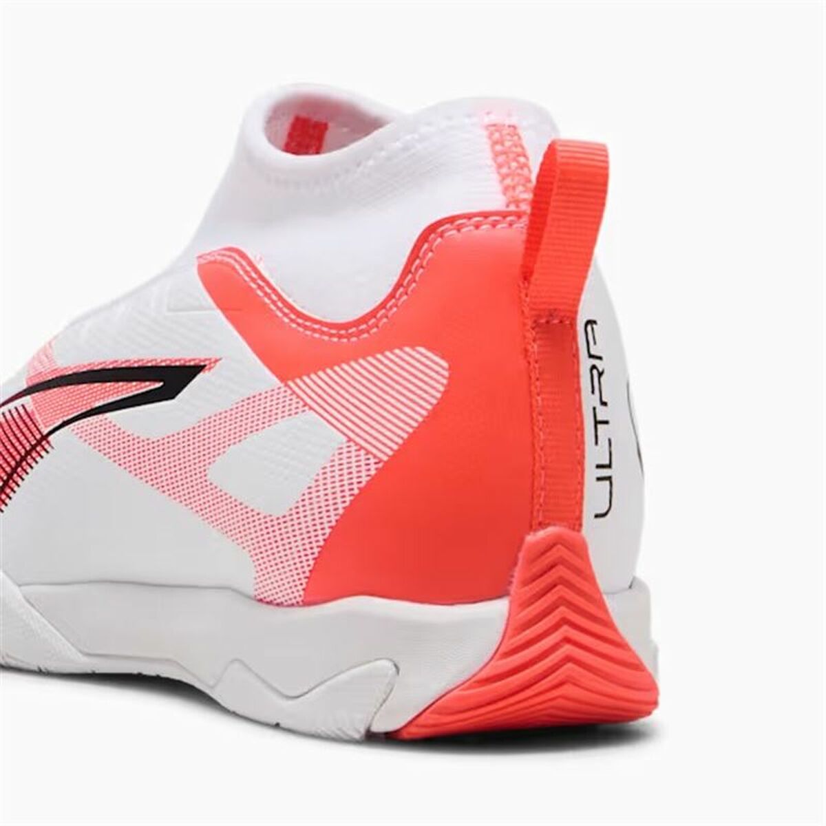Die Puma Ultra 5 Match+ Ll It Hallenfußballschuhe für Kinder verbinden ein sportliches Design mit technischen Merkmalen, die speziell auf die Bedürfnisse des Kinder-Futsals abgestimmt sind, jedoch auch für Erwachsene je nach Typ geeignet sind. Diese Hallenfußballschuhe verfügen über ein leichtes Mesh-Obermaterial, das hervorragende Atmungsaktivität und Komfort bietet, sodass die Füße auch bei intensivem Spiel kühl bleiben. Die weiße Farbe mit schwarzen Details sorgt für einen vielseitigen, gut kombinierbaren Stil und bewahrt den klassischen Sport-Schuh-Look. Sie sind mit einer abriebfreien Sohle ausgestattet, die optimalen Grip auf Hallenböden bietet, ohne Spuren zu hinterlassen – eine Grundvoraussetzung für Hallenfußball. Die Kombination aus Leichtigkeit, Strapazierfähigkeit und Haftung garantiert eine effektive Leistung bei schnellen Bewegungen und Richtungswechseln. Obwohl das Produkt primär für Kinder gedacht ist, weist das Modell technische Eigenschaften auf, die auch bei Erwachsenenschuhen zu finden sind, was für hohe Qualität und Langlebigkeit in dieser Kategorie spricht. Die Puma Ultra 5 Serie positioniert sich als funktionale und technische Wahl, ideal für junge Sportler, die einen Schuh suchen, der den Anforderungen des Hallenfußballs gerecht wird. Insgesamt bieten diese Schuhe eine ausgewogene Lösung aus Komfort, Design und Funktionalität für den Hallensport.