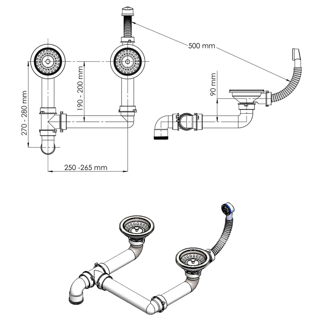 - Ein Siebkorb-Ablaufgarnitur zur einfachen Schmutzentfernung ist im Lieferumfang enthalten