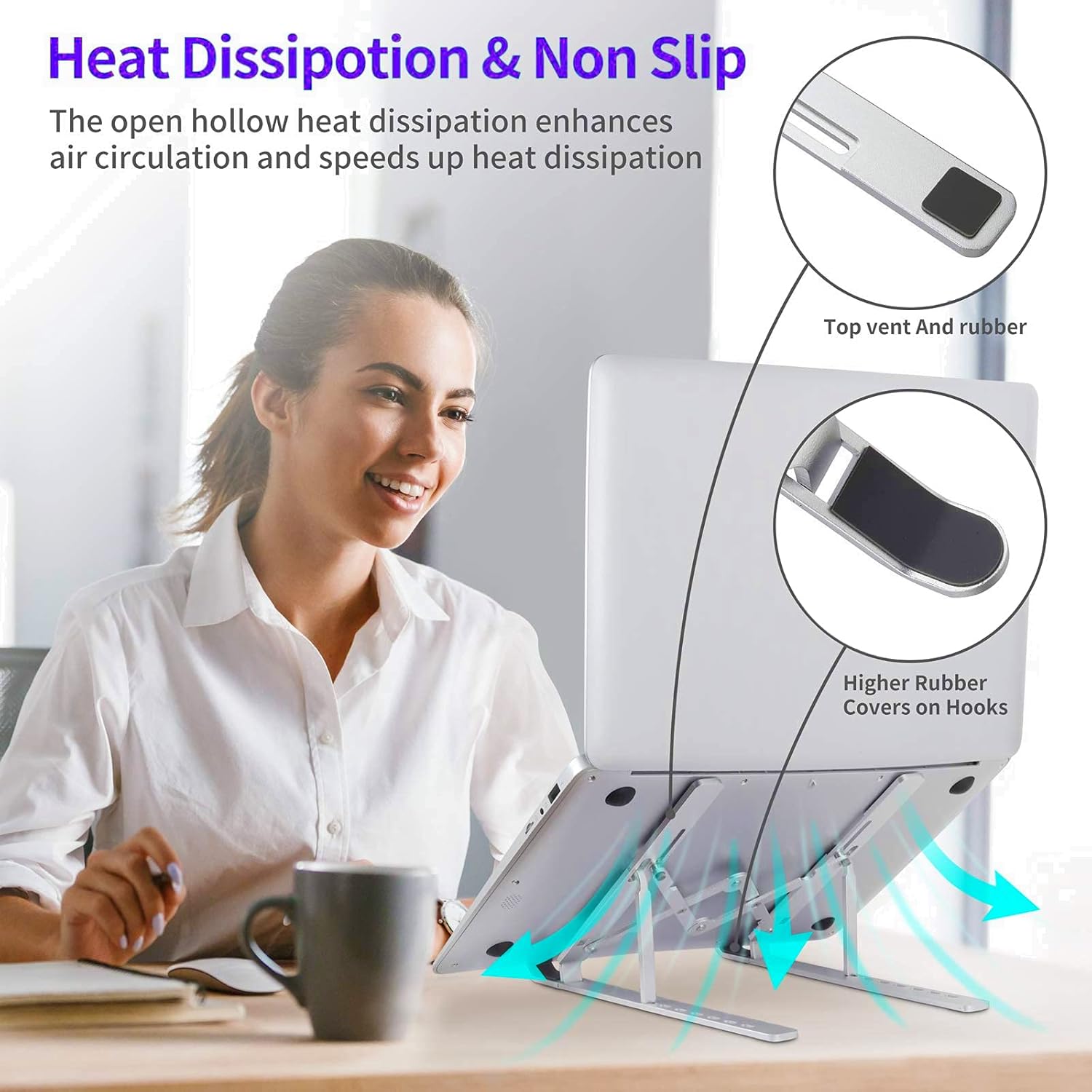 - 【Schutz durch Silikon & Stabilität】Dank sandgestrahlter und gebürsteter Oberfläche sowie 10 rutschfester Gummifüße ist Ihr Gerät optimal vor Kratzern und Verrutschen geschützt. Diese höhenverstellbare Laptophalterung besteht aus robuster Aluminiumlegierung. Das neue Doppel-M-Design ist besonders stabil und trägt bis zu 40 kg. Die robuste Konstruktion verhindert Wackeln beim Tippen.