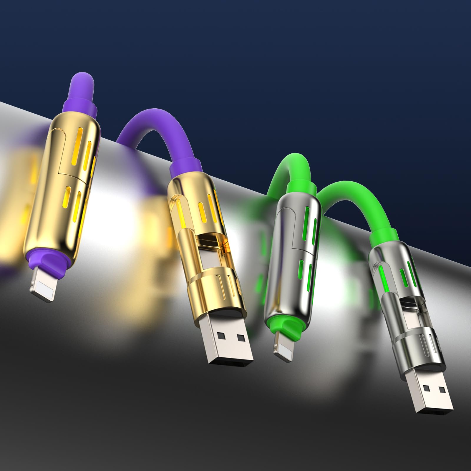 Optimieren Sie Ihr Ladeerlebnis mit dem MFish 4-in-1 Universal-Ladekabel – ein einziges Kabel für alle Fälle. Es ist für schnelles Laden mit bis zu 240 W ausgelegt, besonders langlebig und unterstützt USB-C-zu-C-, USB-C-zu-Lightning-, USB-A-zu-C- und USB-A-zu-Lightning-Anschlüsse. Ideal für iPhones (über Lightning), iPads, MacBooks, Android-Smartphones, Tablets, Powerbanks und mehr. Kompakt und reisefreundlich sorgt dieses All-in-One-Kabel für Ordnung und lädt Ihre Geräte immer auf – egal an welchem Anschluss.