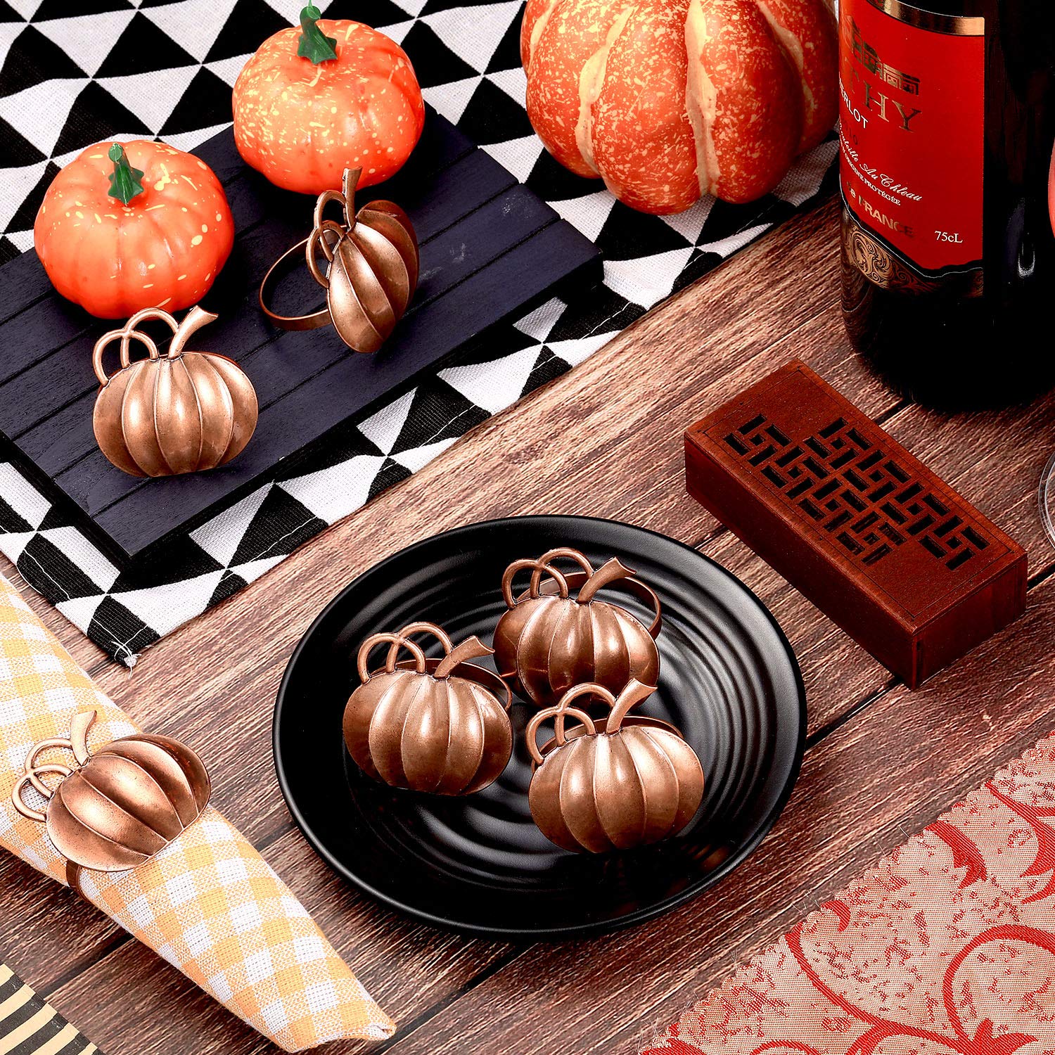 Patelai 6er-Pack Kürbis-Serviettenringe für Thanksgiving, Herbstliche Serviettenhalter, Tischringe für Thanksgiving, Halloween, Hochzeiten, Dinnerpartys, Familienfeiern (Bronze)