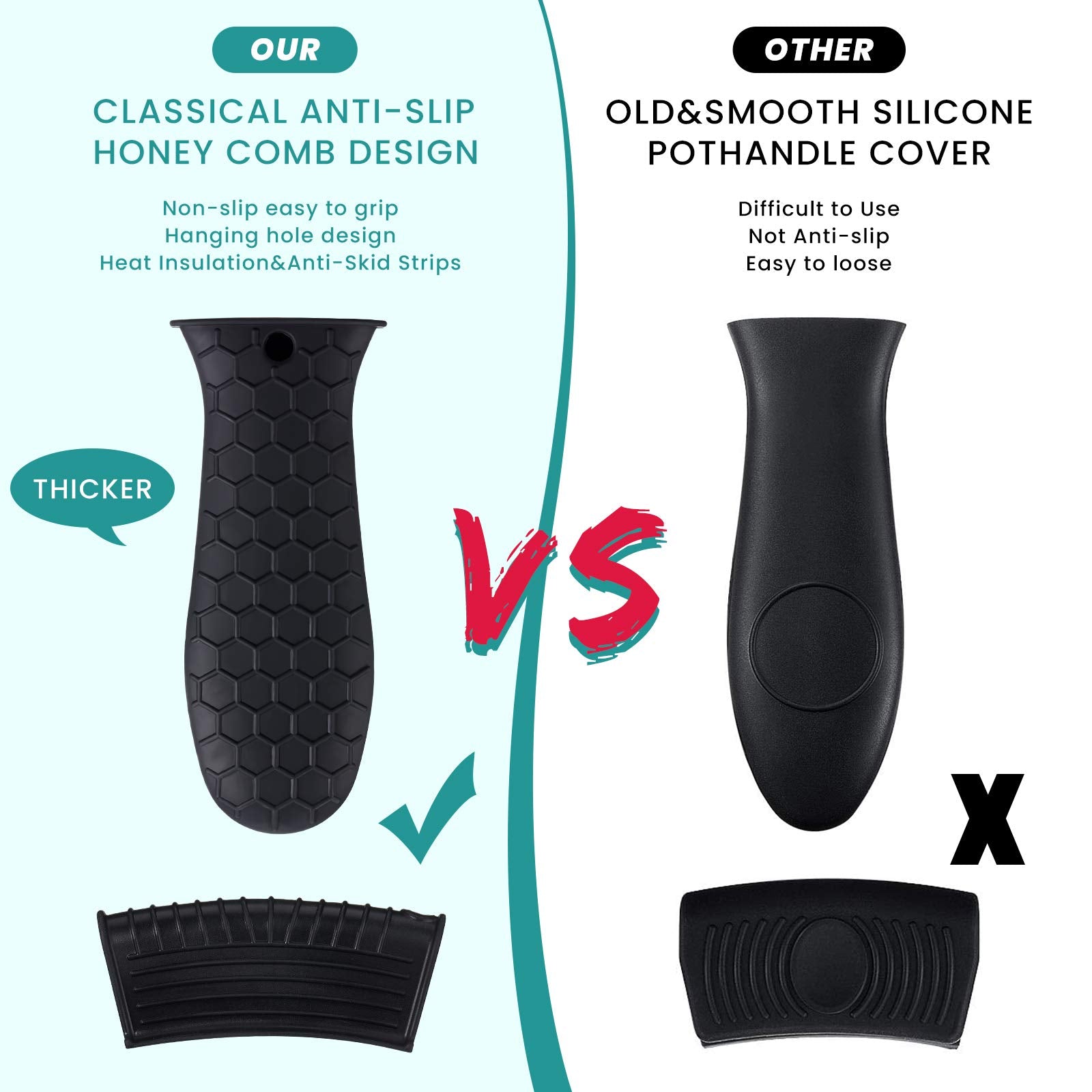 Patelai 8-teiliges Silikon-Topflappen-Set, Griffüberzug für Gusseisen, hitzebeständig, rutschfest, wiederverwendbar, für Bratpfannen, Küchenzubehör (Schwarz)