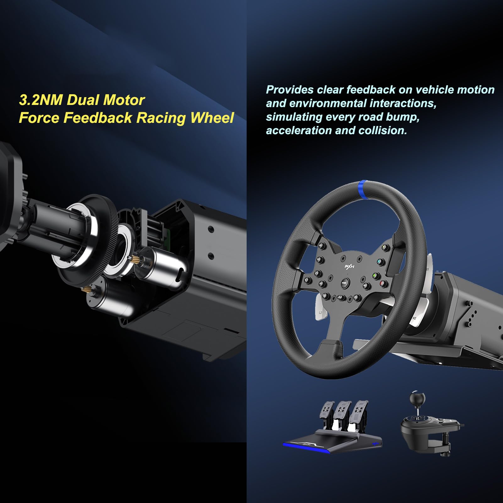 PXN V99 Force Feedback PC-Rennlenkrad, abnehmbares 270/900-Grad-Lenkrad mit Pedalen und Schalthebel für Windows-PC, PS4, Xbox One und Xbox Series X/S