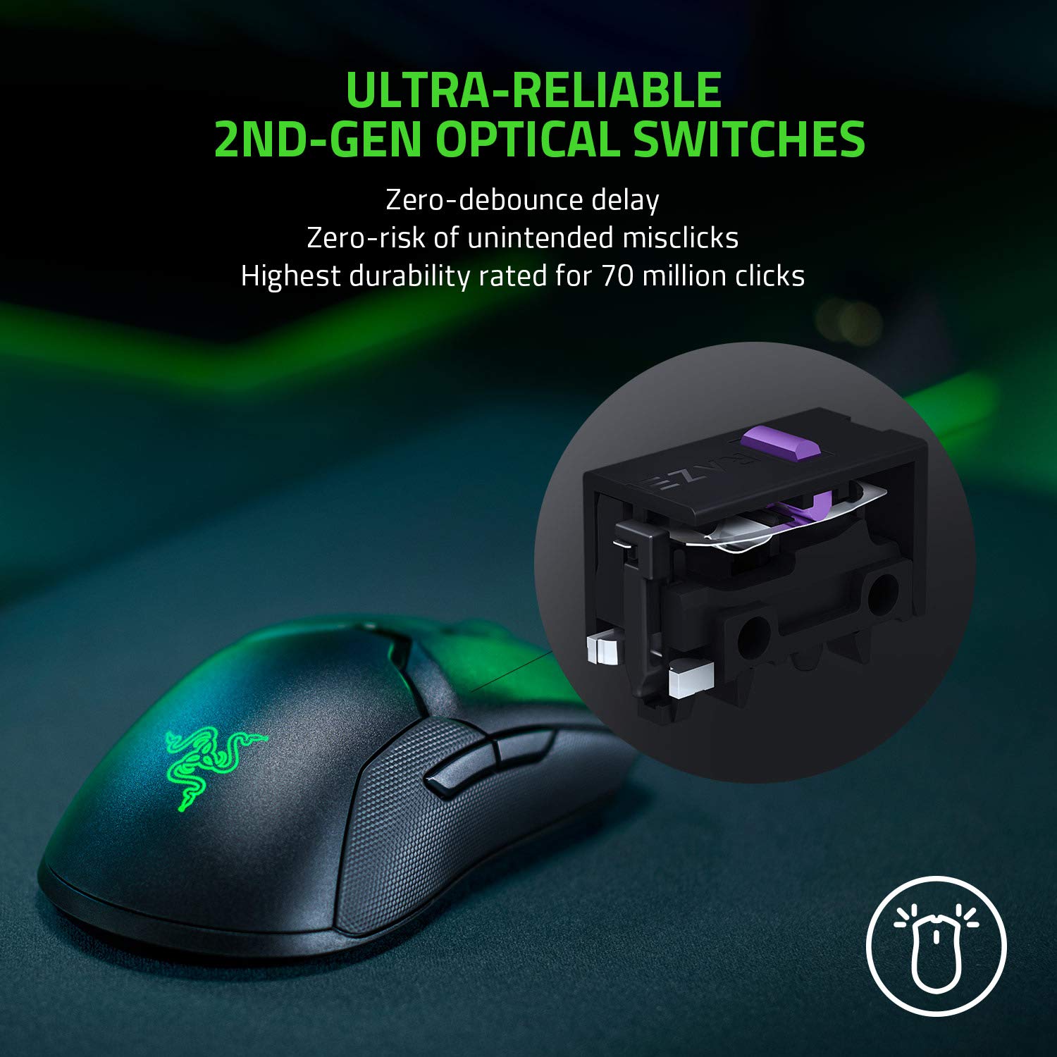 • OPTISCHER MAUSSCHALTER – Die optischen Mausschalter von Razer nutzen eine lichtstrahlbasierte Auslösung und registrieren Tastendrücke in Lichtgeschwindigkeit.