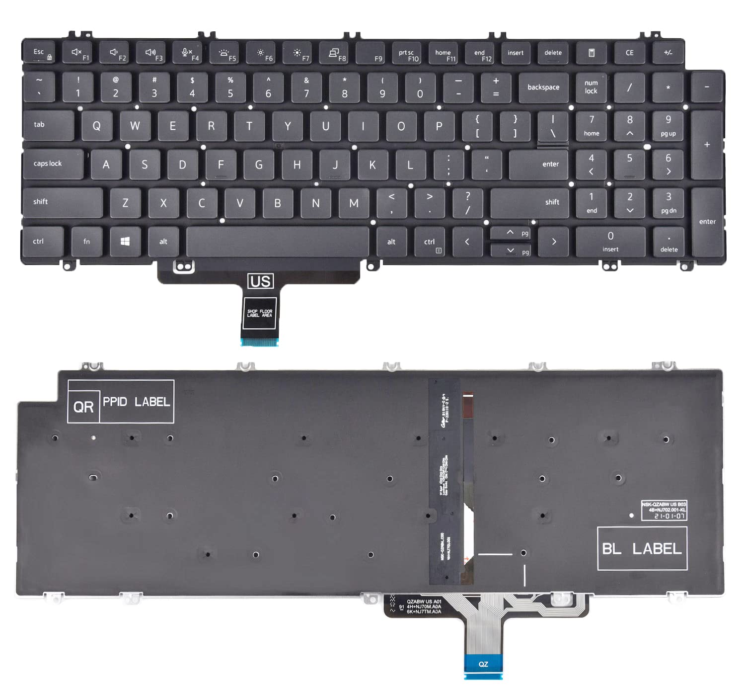 Ersatztastatur für Dell Latitude 5520, 5530, 5540, 5521, 5531, Precision 3560, 3570, 3580, 3561, 3571, 3581, 7670, 7680, 7770, 7780 Laptops mit Hintergrundbeleuchtung (US-Layout), Teilenummer: N7N16 0N7N16
