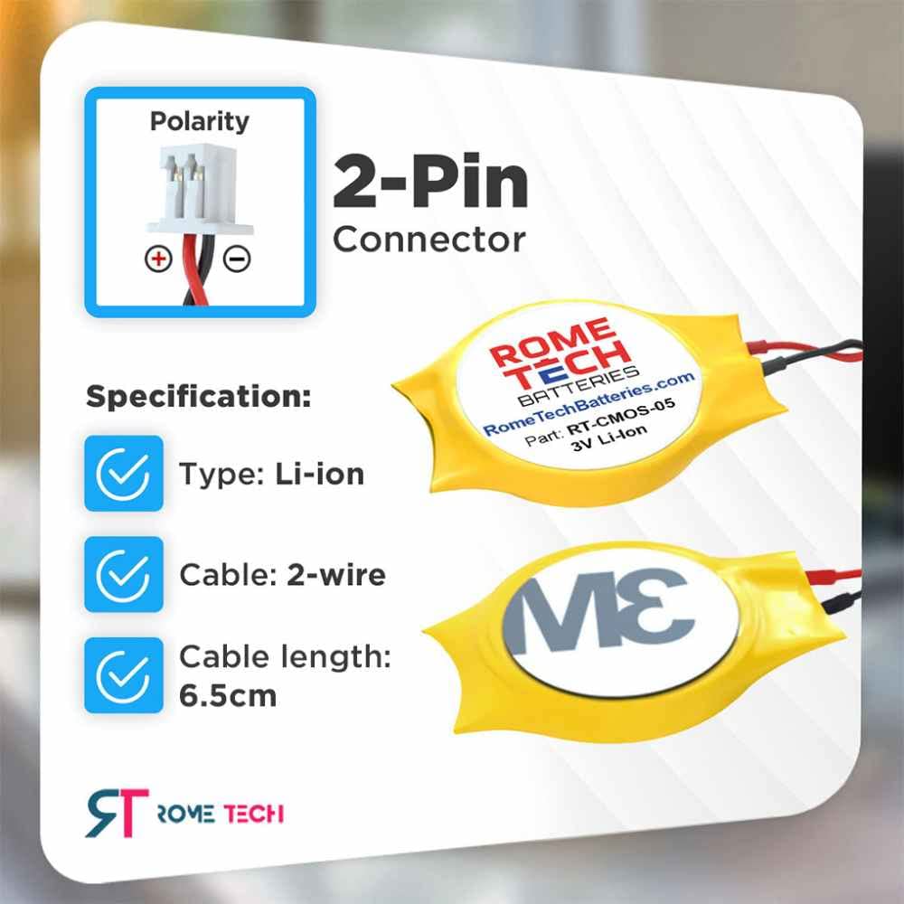 Rome Tech CMOS-Batterie für Dell Alienware M11x, M11x R2, M11x R3, M14x, M14x R2 – Backup-BIOS-RTC 3V CR2032 mit 2-poligem 2-adrigem Kabel
