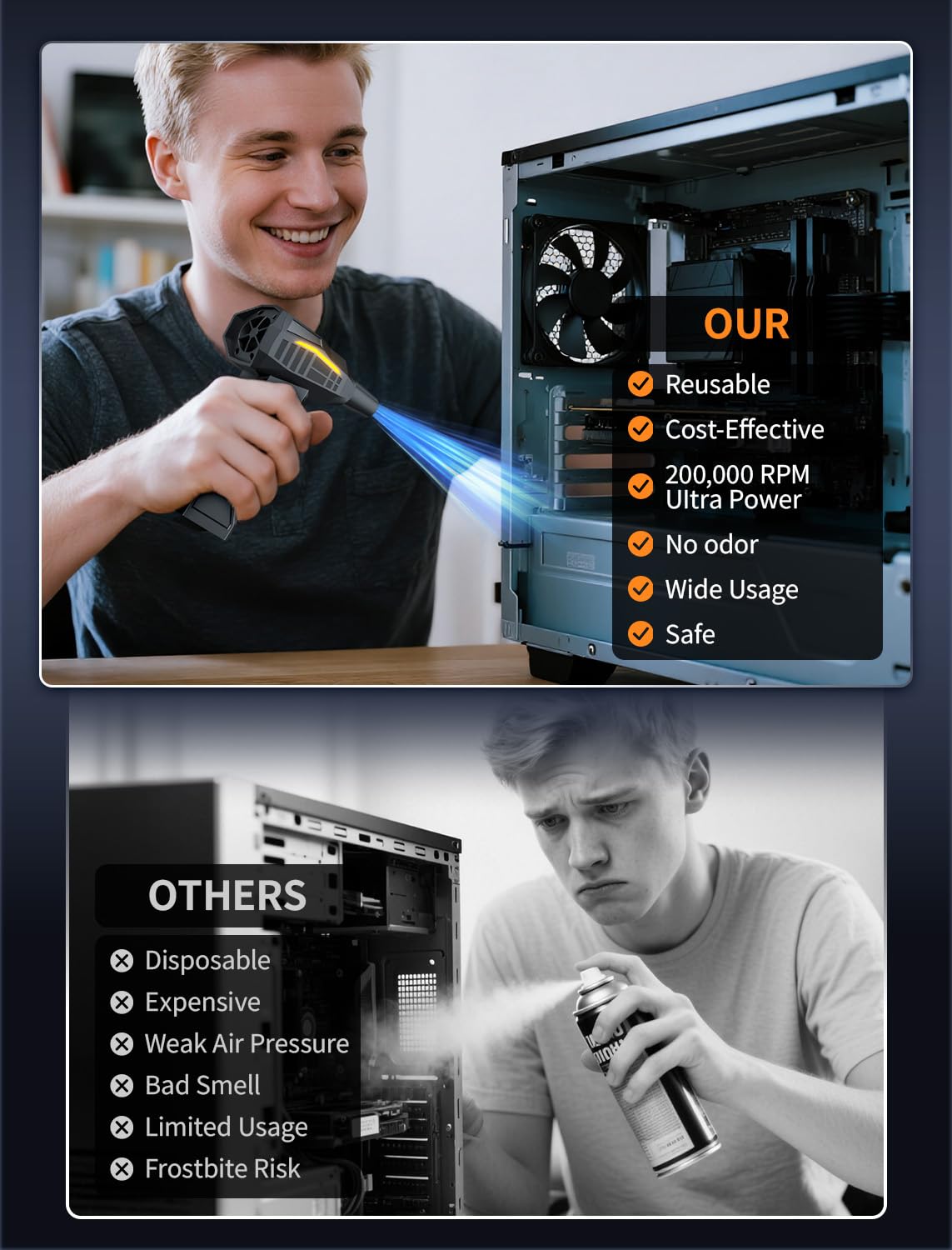RUNLANE Druckluft-Staubwedel, 200000 U/min, elektrischer Druckluft-Staubwedel mit Licht, 4-stufig verstellbarer kabelloser Staubbläser für Computer, Tastatur, Außenbereich, Haushalt und Auto (FB09-Schwarz)