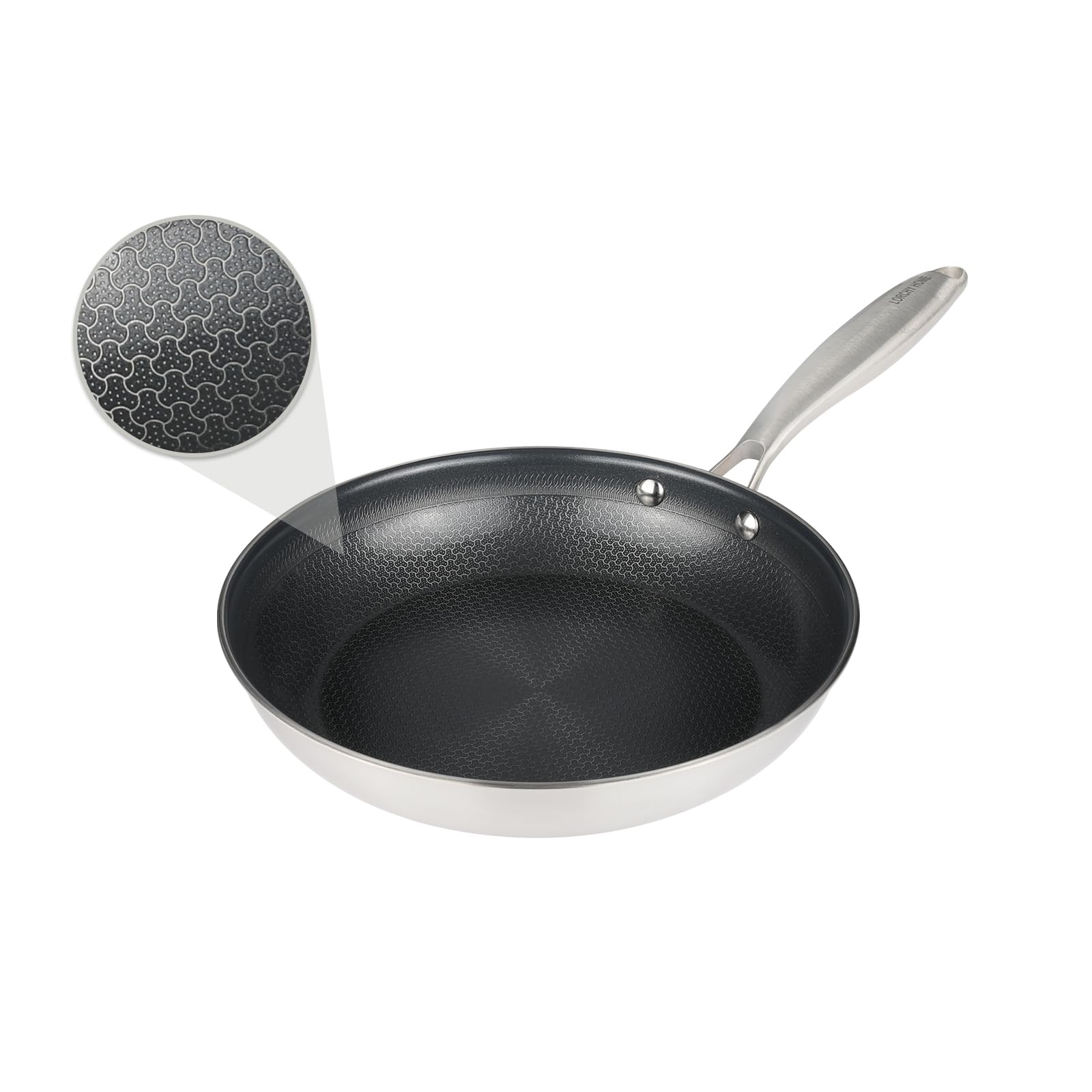 Stainless Steel Nonstick Frying Pan, Hybrid Ceramic 8-Inch Frying Pans, Stay-Cool Handle, PFAS & PFOA PTFE Free, Dishwasher & Oven Safe, Scratch-Resistant, Compatible with Induction & All Cooktops