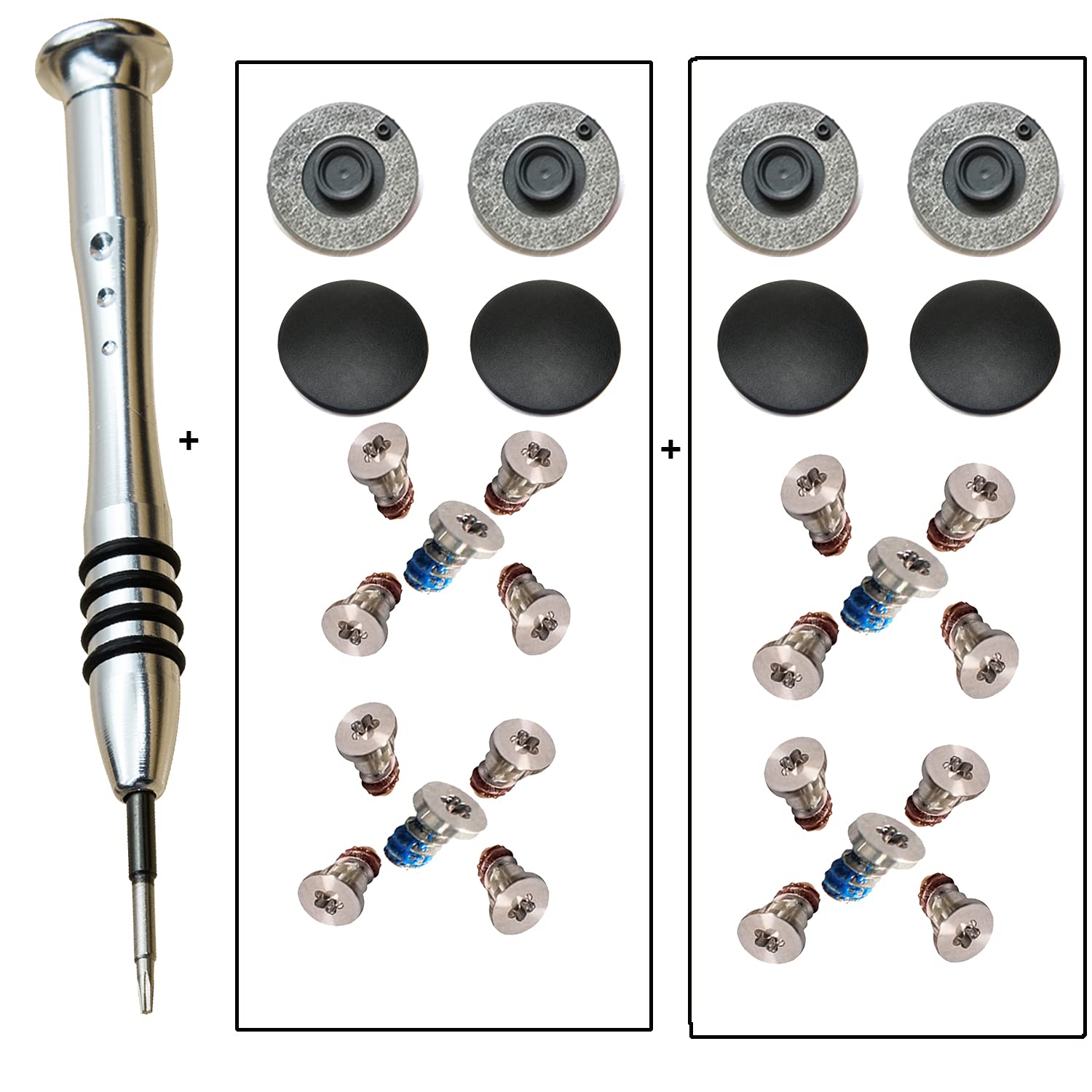 2 Set (20pcs) Repair Replacement Screws Set +8 Pack Rubber Case Feet+ 1pcs 5-Point Pentalobe Screwdriver Compatible with Unibody MacBook Retina for A1425 A1502 A1398 13" 15" Bottom Case