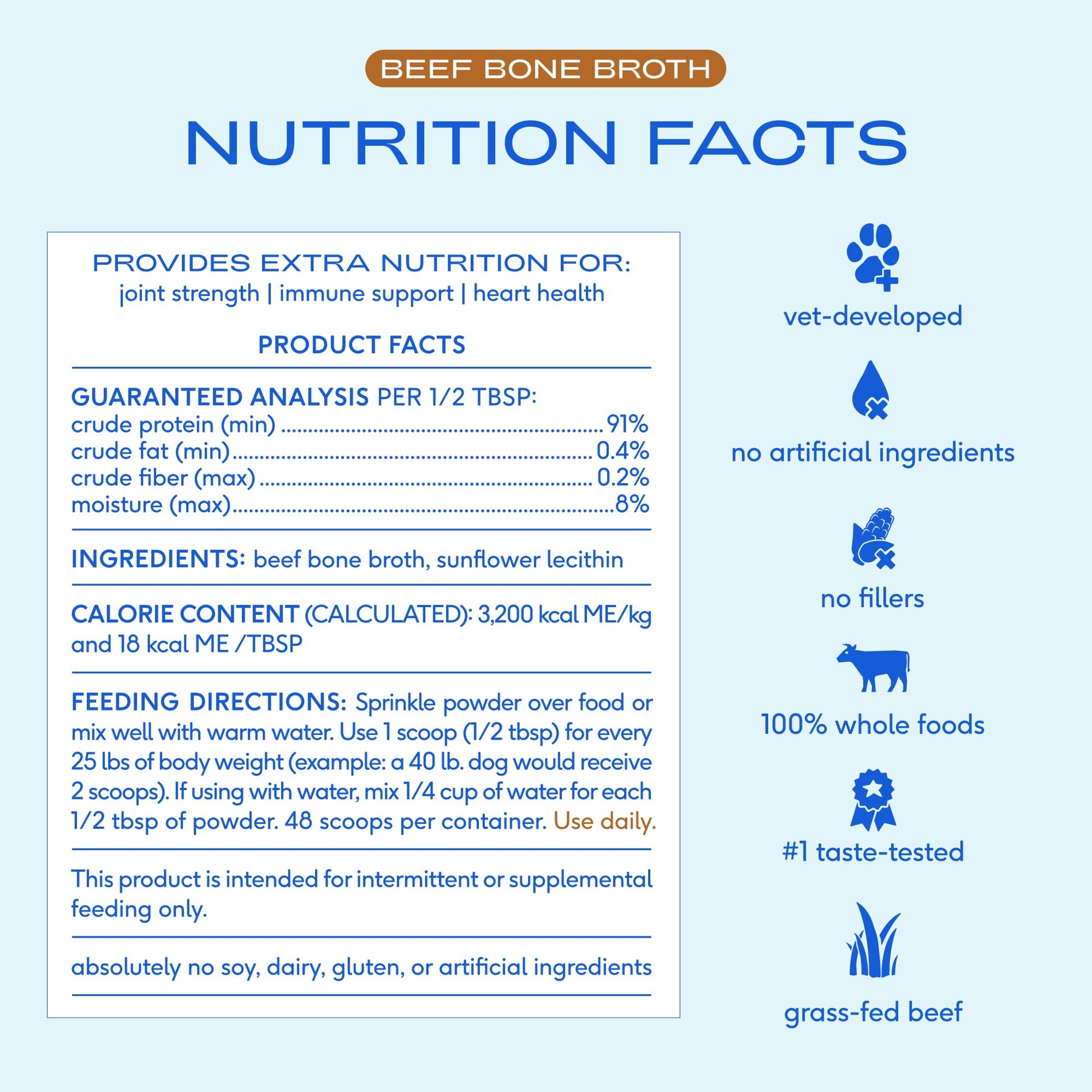 Native Pet Bone Broth for Dogs - Made with Real Beef Bone Broth, Dog Food Toppers for Picky Eaters - Provides Extra Hydration & Nutrition for Joint Strength, Immunity & Heart Health-48 Scoops