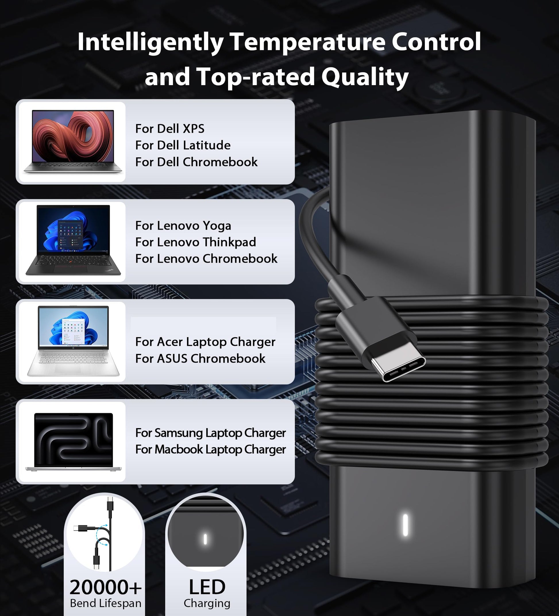 New Slim 65W USB C Laptop Charger Replacement for Dell Latitude 5420 5430 5520 5530 5540 7420 7430 7440 7390, XPS 13 Chromebook Charger 3100 Power Adapter Fit for Dell Laptop Charger USB C