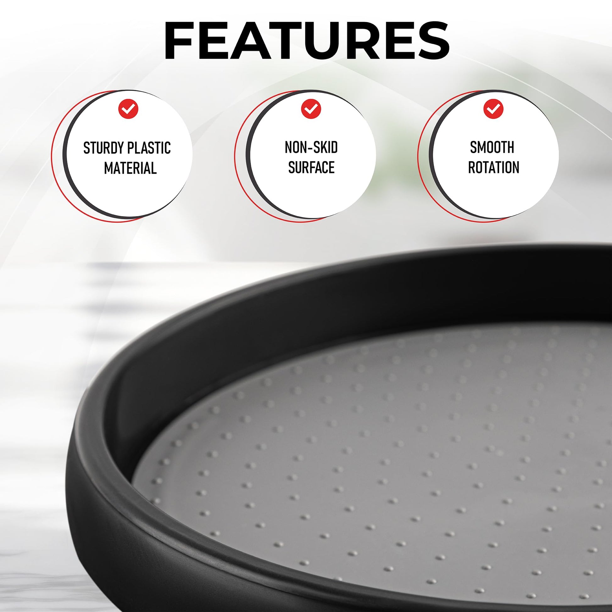 The smart, circular design maximizes corner and cabinet spaces that are often underutilized, transforming cluttered shelves and countertops into an organized haven. Available in a convenient multi-pack, they are ready to use straight out of the box-no assembly required. The raised edges provide additional assurance that your items will stay put, even when you reach for that elusive spice jar at the back. This feature, coupled with their sturdy build, makes them a robust solution for all your organizational needs.