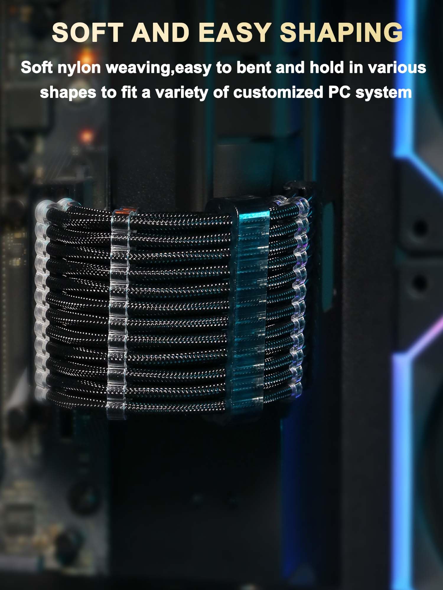 The Sirlyr PSU Cable Extension Kit is designed to enhance the functionality and aesthetics of your PC build. With its 108-strand tinned copper cores, the cables offer superior flexibility, making installation straightforward and hassle-free. The PC material connectors ensure a secure and precise fit when connecting to your motherboard and graphics card. Each cable in the kit comes with three pre-installed transparent line combs, simplifying the process of managing and organizing your power supply cables. The 8-pin GPU cables feature gold-plated pins, providing enhanced load capacity and reliable current output, making them suitable for high-performance GPUs such as the RTX 3080, 4060, RX 6600, and 7600. The black nylon braided cables are not only durable and resistant to dirt and heat but also add a stylish touch to your build. The consistent color scheme, maintained by the black transparent connectors, ensures a professional and polished appearance. The entire kit uses 16AWG wire cores, which are thicker than standard 18AWG cores, ensuring both aesthetic appeal and reliable performance. This makes the Sirlyr PSU Cable Extension Kit an excellent choice for anyone looking to improve the safety and stability of their desktop computer. Included in the kit: One 24-pin ATX cable One 4+4-pin CPU cable Two 6+2-pin GPU cables Three pre-installed transparent line combs per cable Additional set of black cable combs for better cable management Sirlyr is committed to providing high-quality custom cable extensions and other PC accessories. We offer a one-year free replacement service for any quality issues, and our customer support team is always ready to assist you with any questions or concerns.