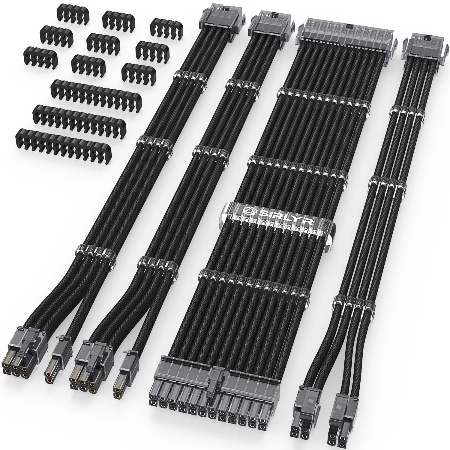 Sirlyr Transparent Connector PSU Cable Extension Kit Customed PC Power Supply Extend Mod 16AWG with 24 Pin ATX × 1/8 Pin EPS × 1/ Gold-Plated 8Pin Pcie × 2,Soft Nylon Braided Black