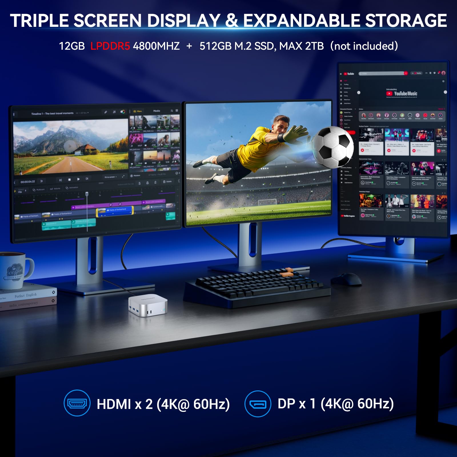 SOAYAN Mini PC, 13th Twin Lake N150 Linux Mini Computers (up to 3.6GHz), 12GB LPDDR5 512GB SSD Ubuntu Micro Desktop Computer 4K Triple Display/Dual LAN/Type C/DP/WiFi 5/USB3.2/BT4.2 for Home, Office