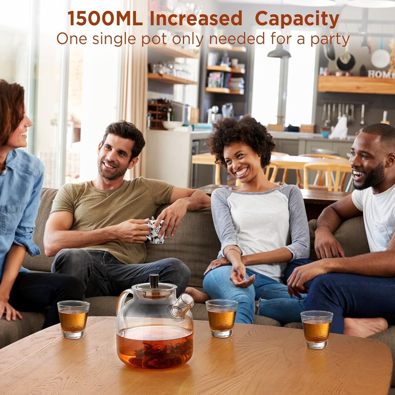 1500ml(50oz) Glass Teapot with Removable Infuser, Ehugos Stovetop Safe Large Tea Pot, Blooming and Loose Leaf Hand Crafted Kettle for Women and Adult with Stainless Infuser