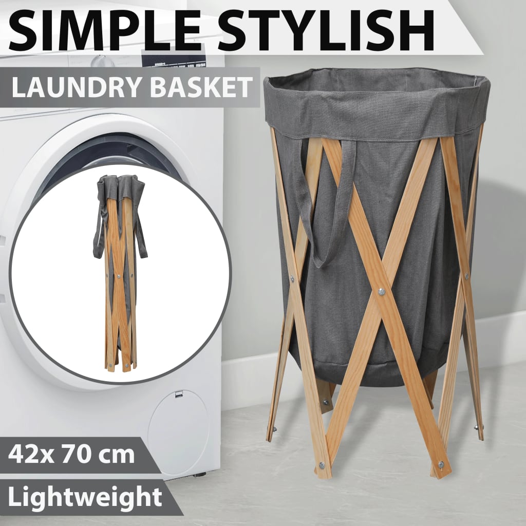 Faltbarer Wäschekorb Grau Holz und Stoff