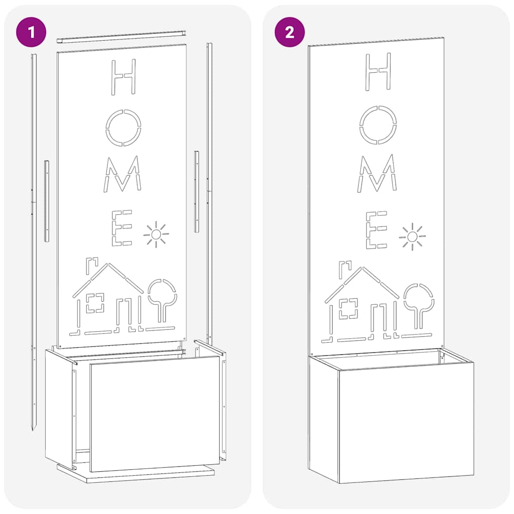Der dekorative Gartensichtschutz ist eine coole Lösung, um deinen Garten zu einem persönlichen Raum zu machen. Mit einem modernen Design passt er zu zeitgemäßen Stilen und hebt klare Linien hervor. Er bietet nicht nur Privatsphäre, sondern verleiht deinem Garten oder deiner Terrasse auch einen stylischen Touch. Robuste Stahlkonstruktion Aus hochwertigem Stahl für extreme Haltbarkeit und Widerstandsfähigkeit, perfekt für draußen. Der Stahl hält windigen und regnerischen Wetterbedingungen stand und sorgt so jahrelang für Privatsphäre und Deko. Dekorative Einlagen Die filigranen Einsätze bringen echt was fürs Auge! Diese Einlagen machen den Sichtschutz zu einem Kunststück, das sowohl schön aussieht als auch zuverlässig seinen Zweck erfüllt. Einfache Montage Montage in einfachen Schritten mit einem Schraubendreher, ideal für zwei Personen. So kannst du ihn einfach verstellen oder umstellen, wenn nötig, und schnell verschiedene Arrangements ausprobieren. Matte Oberfläche Die matte Oberfläche ist nicht nur schick, sondern mindert auch die Sonnenblendung, sodass du jederzeit angenehm hinschauen kannst. Sie fügt sich wunderbar in jede Gartenszene ein. Für draußen geeignet Der Sichtschutz ist so gemacht, dass er allen Wetterbedingungen im Garten standhält. Er wird einfach in den Boden gesteckt, um dir bestmögliche Sicherheit und Stabilität zu bieten.
