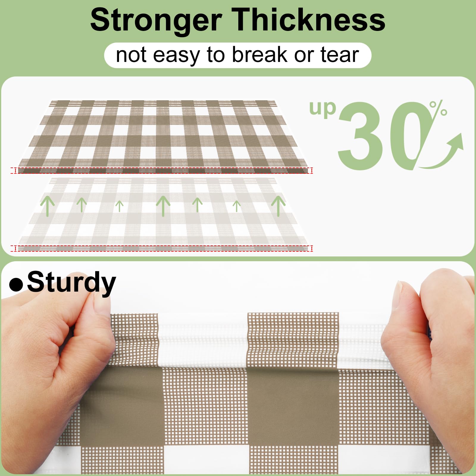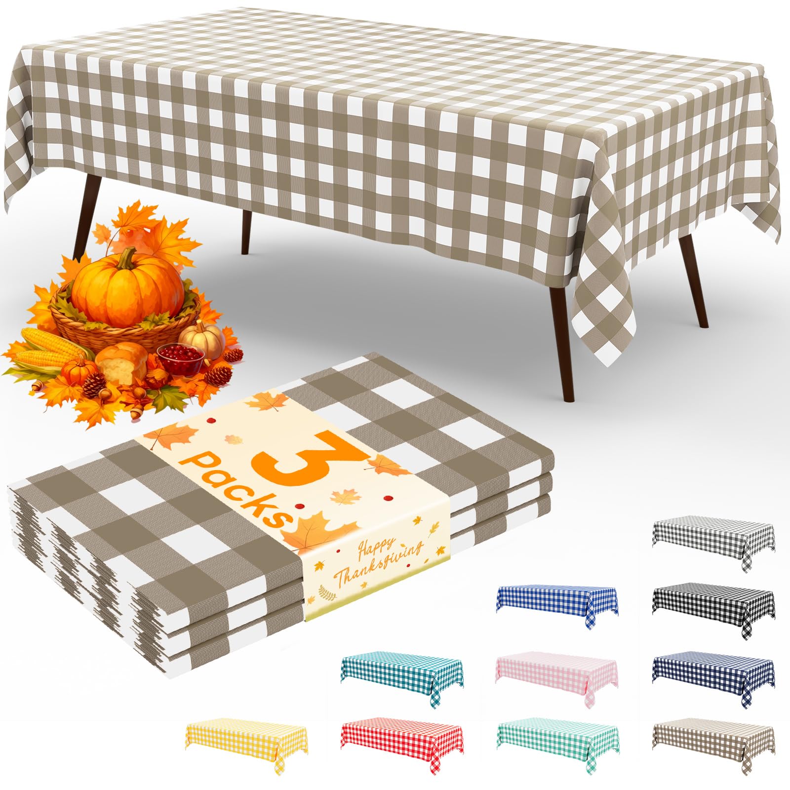 misaya 3 Packs Buffalo Disposable Table Cloth, 54 x 108 Inch Waterproof Plastic Tablecloth, Rectangle White and Khaki Checkered Table Covers for Picnic, Birthday, Party