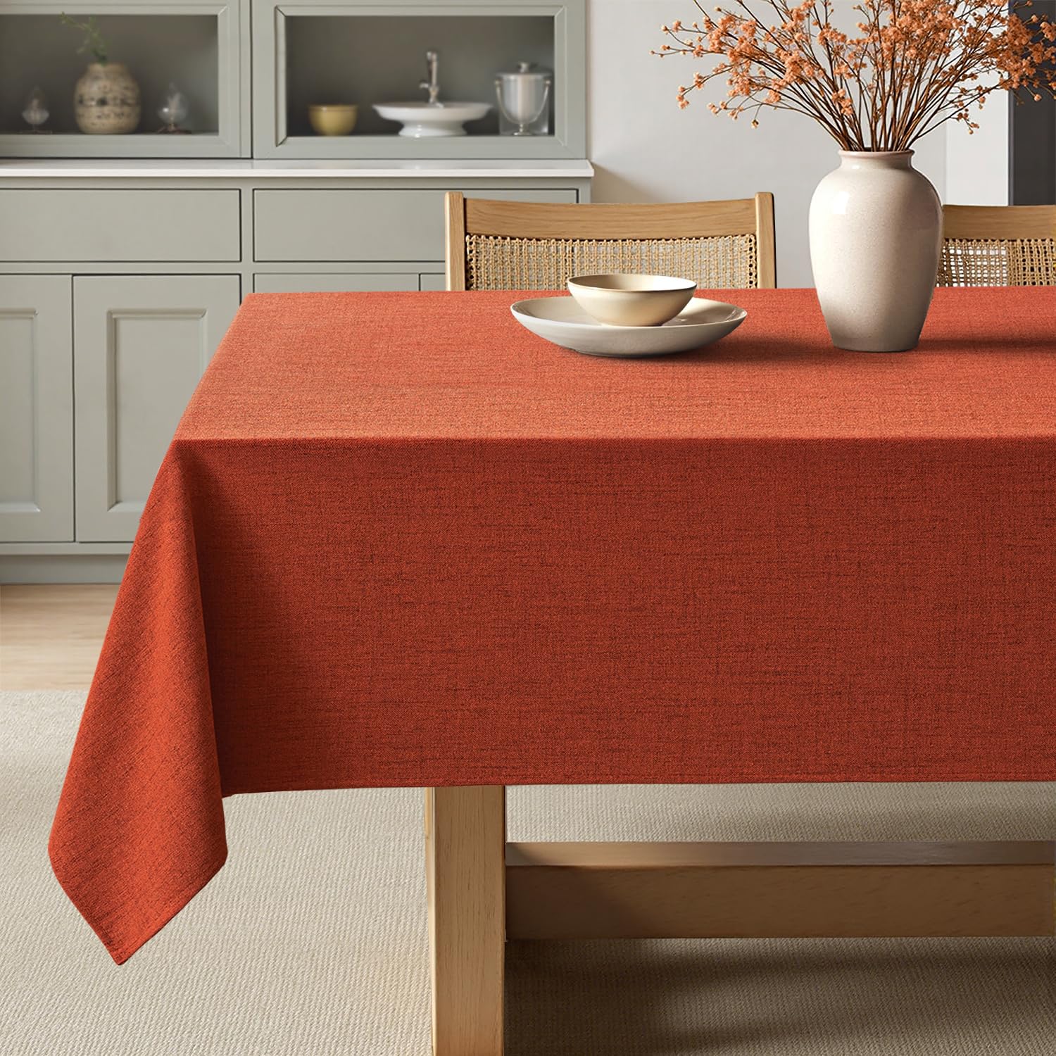 MIULEE Burnt Orange Linen Polyester Tablecloth Fall Thanksgiving 60x84 Inch Rectangle Table Cloth Waterproof,Stain Resistant & Wrinkle Resistant for Dining Party Wedding
