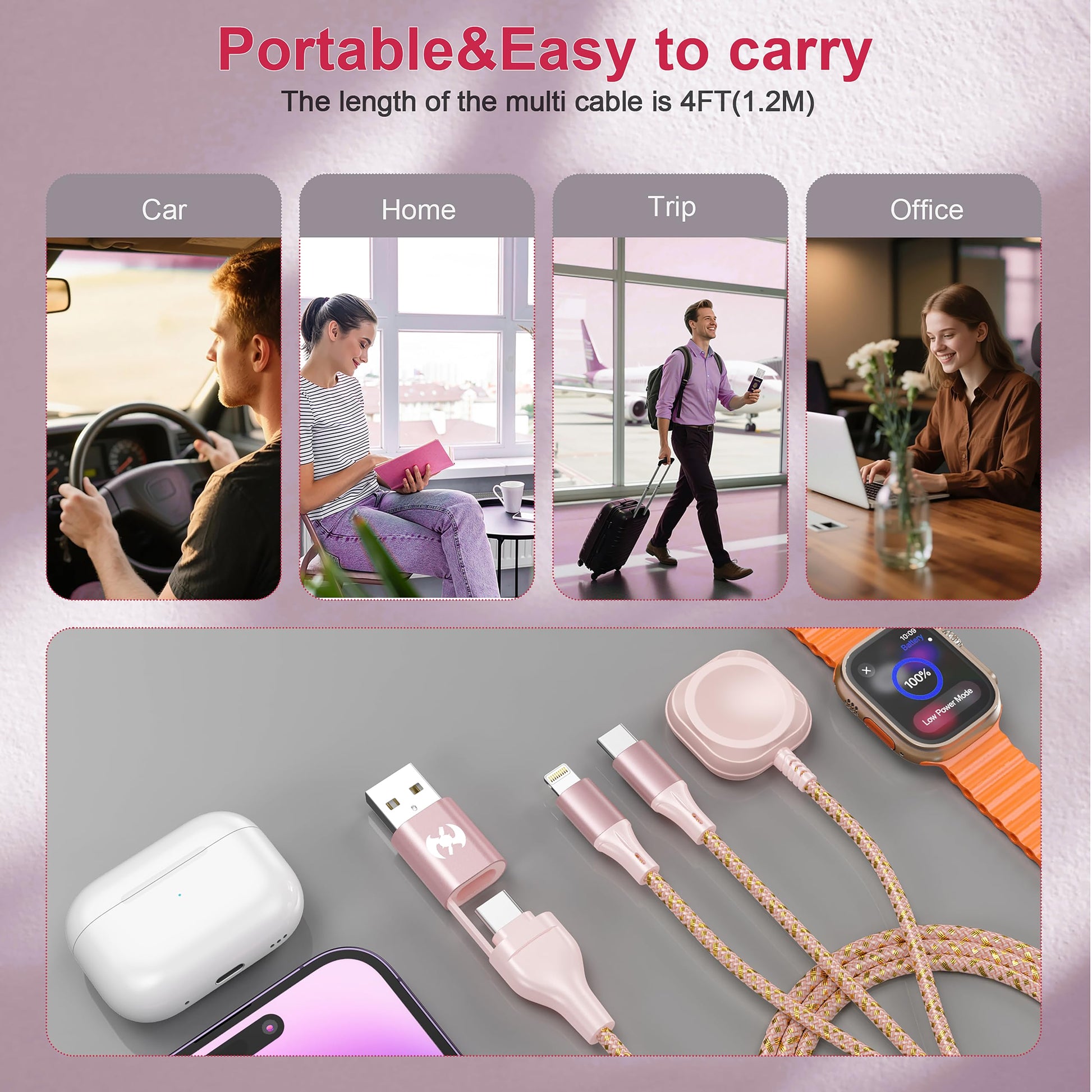 ✅ Universal Compatibility: Works seamlessly with Apple Watch Series 1-9/Ultra, iPhone (all Lightning & USB-C models), AirPods, iPads, and more smartwatch cables & chargers. Your true all in one charging cable.