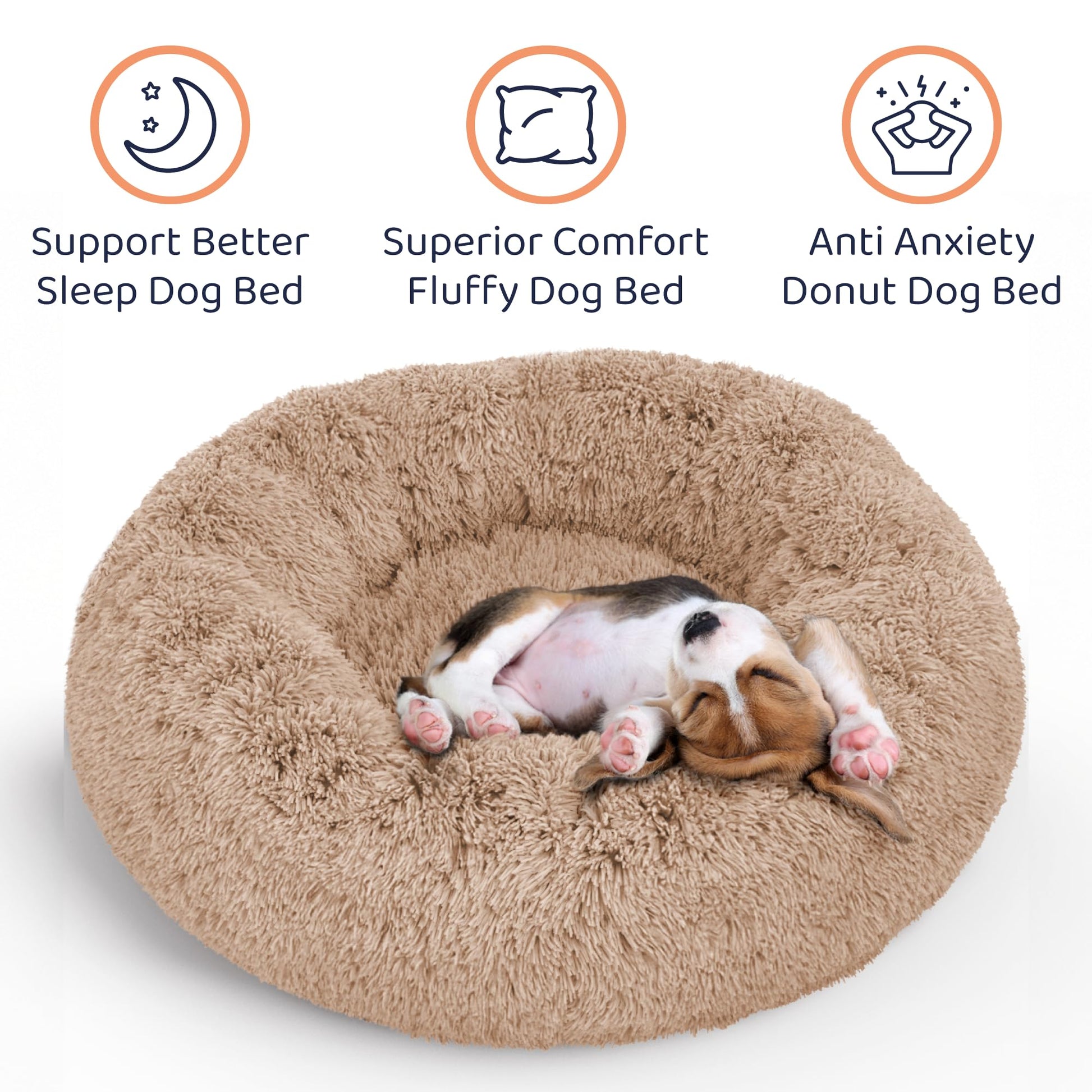 Petloox Donut Dog Bed - Premium Comfort for Anxiety Relief - Fluffy & Calming Design with Ultra-Plush Support | Cozy Round Dog Bed with Super Soft Circle Style (Size M Camel)
