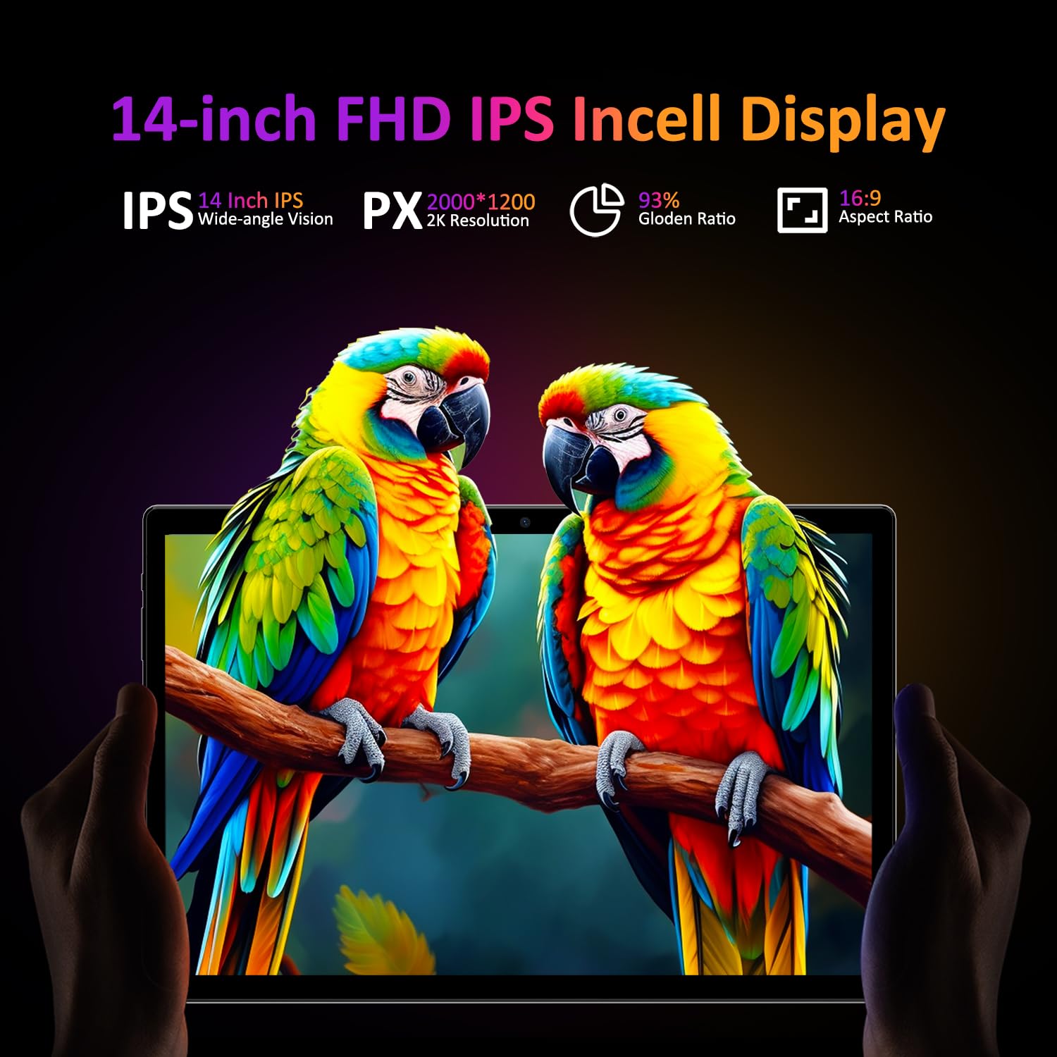 POWMUS Tablets 2025 14 inch Android 14 Tablet, 36GB RAM, 256GB Storage(Expand to 1TB), 2K Display, 8 Core CPU, 11580mAh Battery,4 Speakers, WiFi 5GHz Tablet with Pen Case-Black