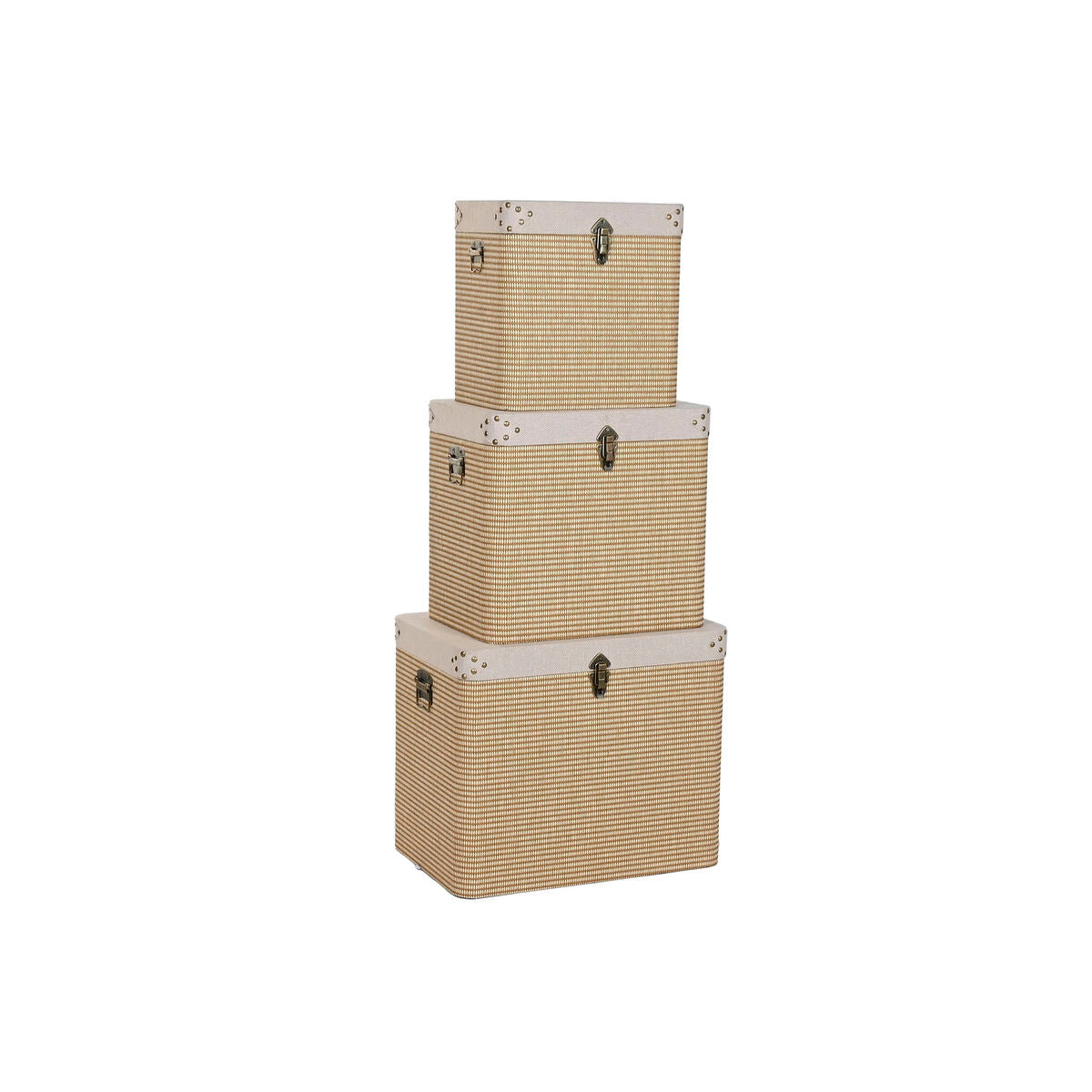 Lot de paniers Home ESPRIT Beige Naturel Polyester Bois Traditionnel (3 Unités)