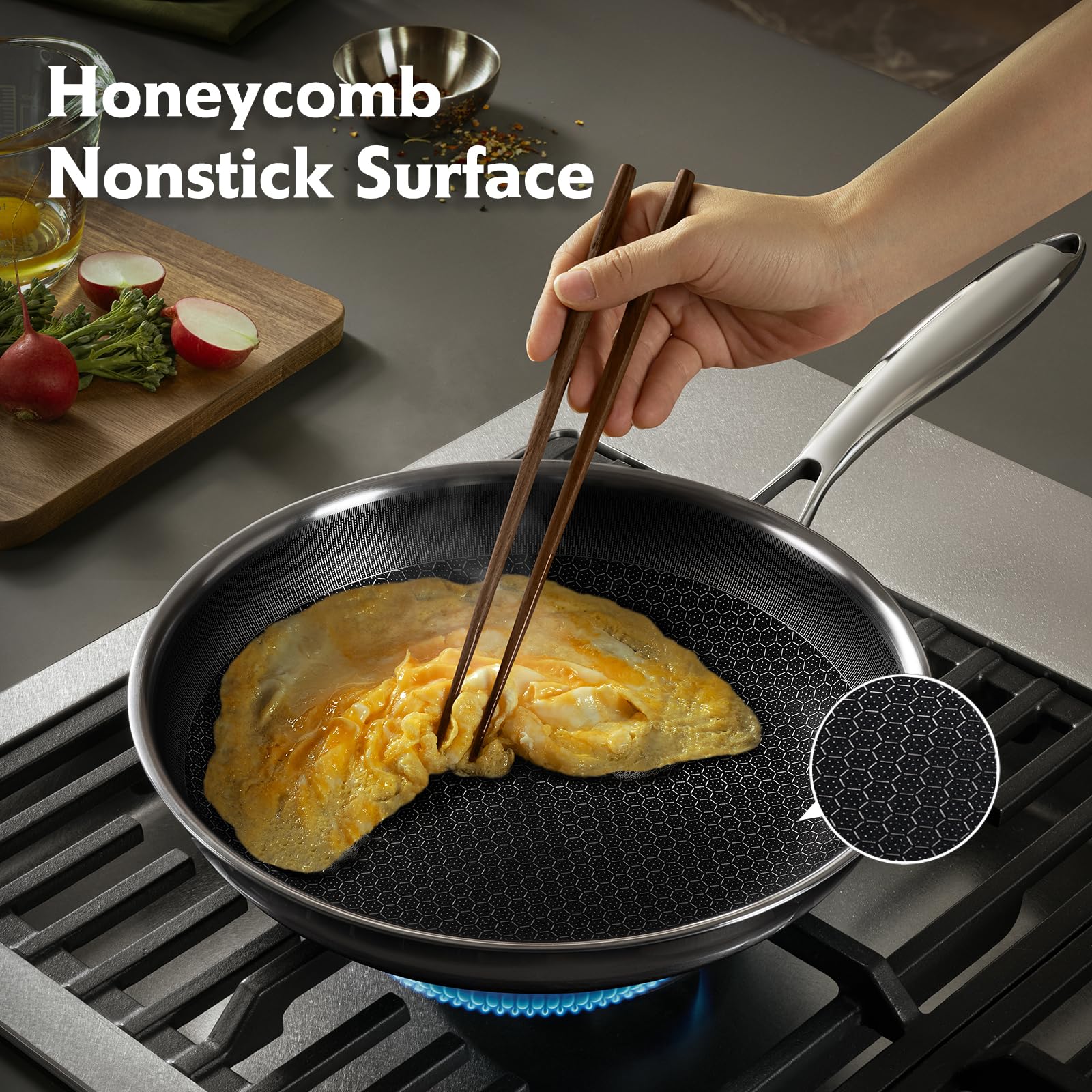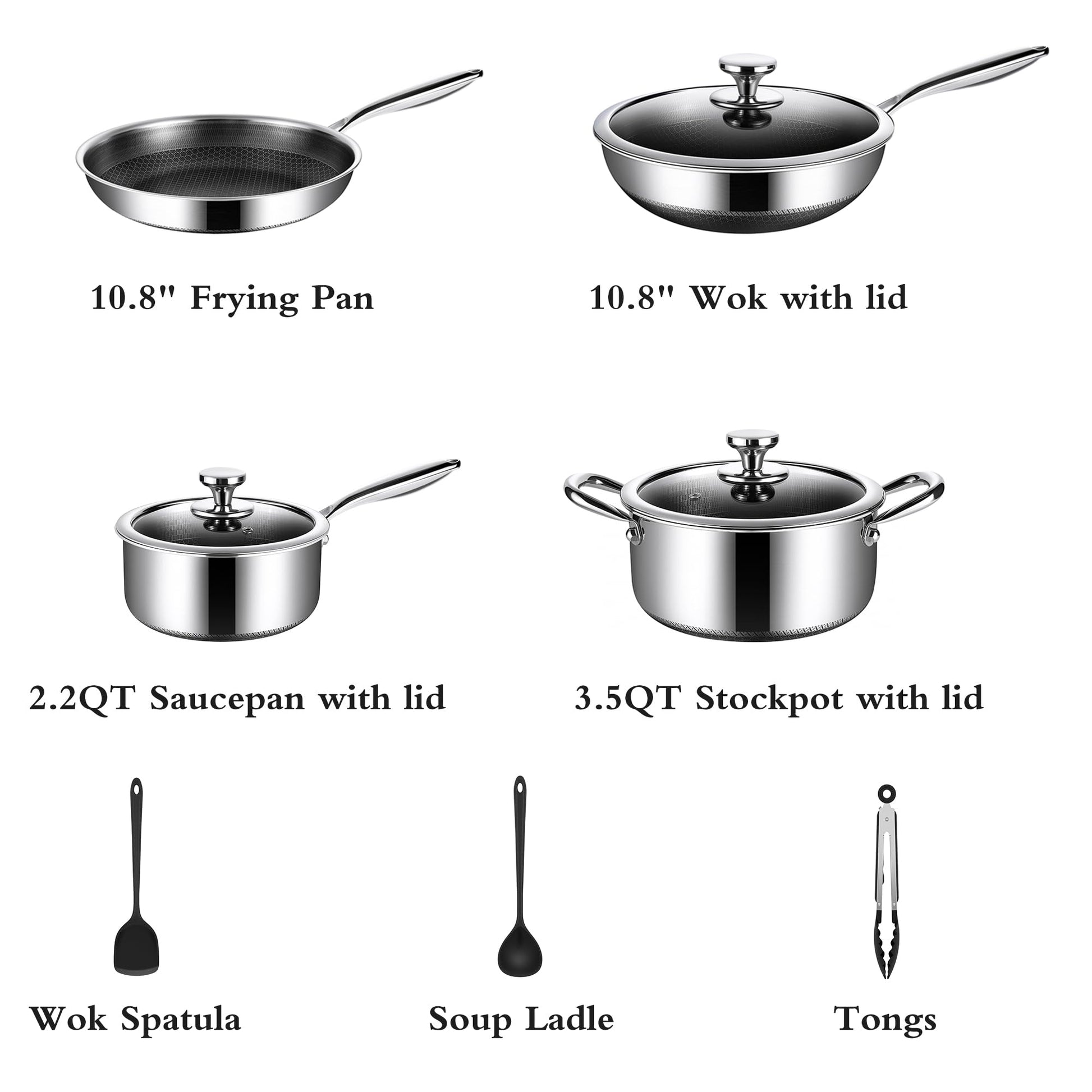 Pots and Pans Set Non Stick, 10 Pcs Hybrid Stainless Steel Cookware Sets, Non Stick Frying Pans, Saucepans, Saute Pan & Stock Pot, PFOA Free Kitchen Skillet,Induction Compatible