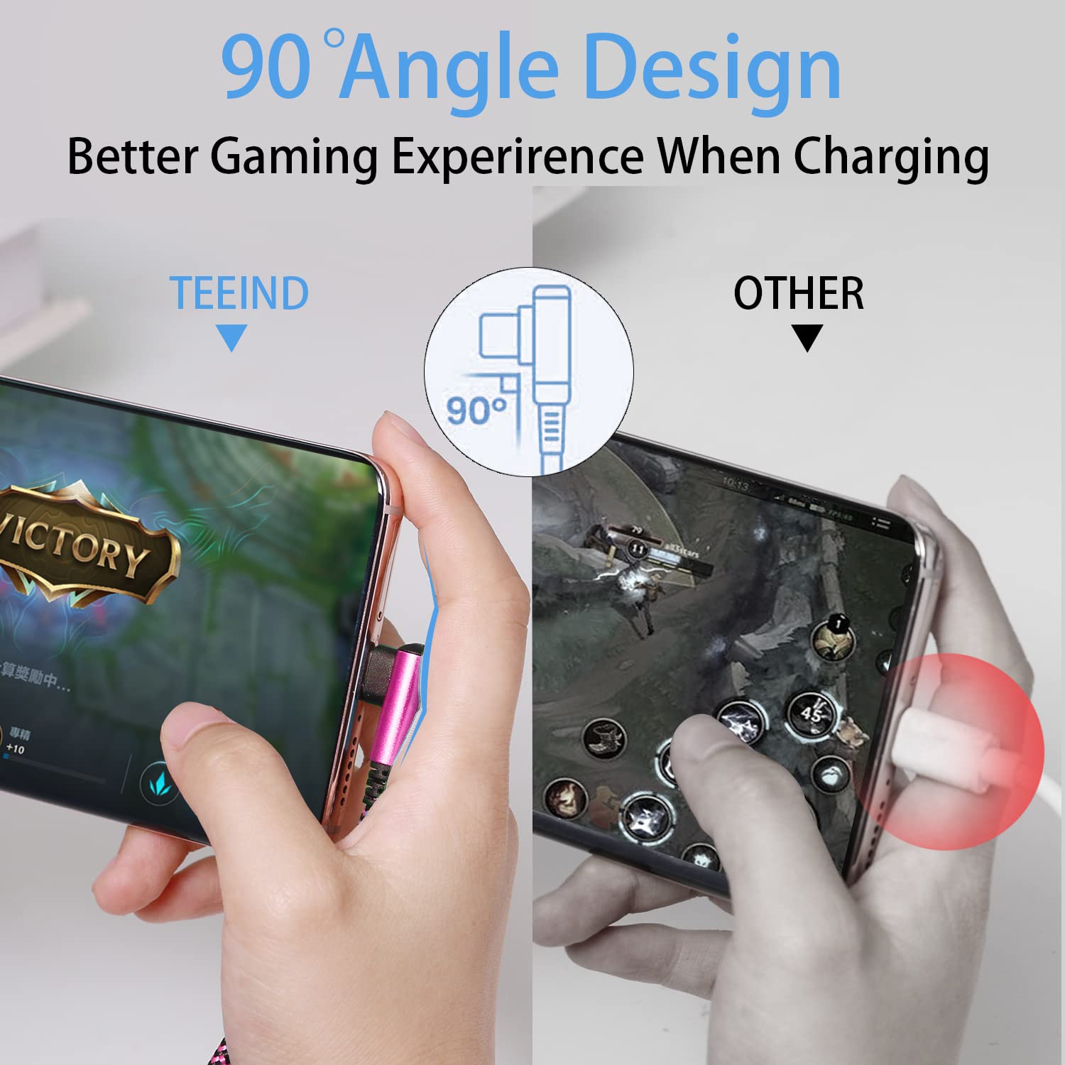 Teeind USB C Angle Cord: [90 Degree/6ft/4Pack] Nylon USB C Cable Compatible with Samsung Galaxy S10/S10e/9/Note 10, Charger Cable-[Blue/Black/Magenta/Purple]