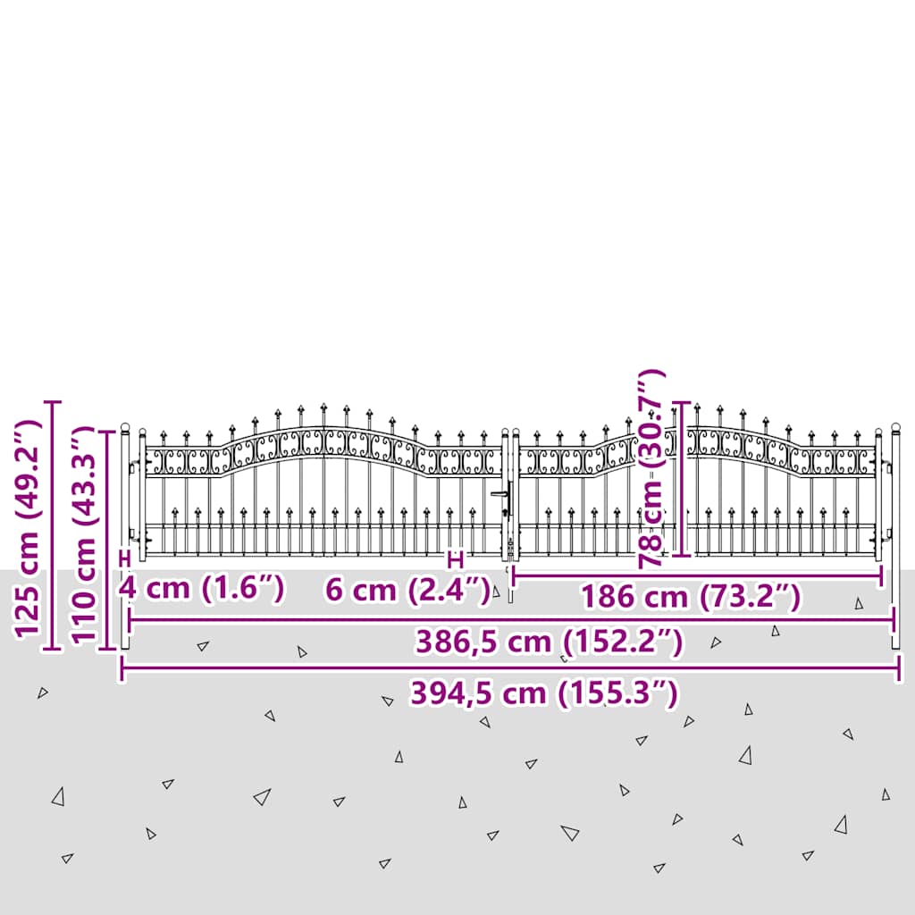 Gartentor Kampen mit Speerspitze Schwarz 394,5 x 78 cm Stahl